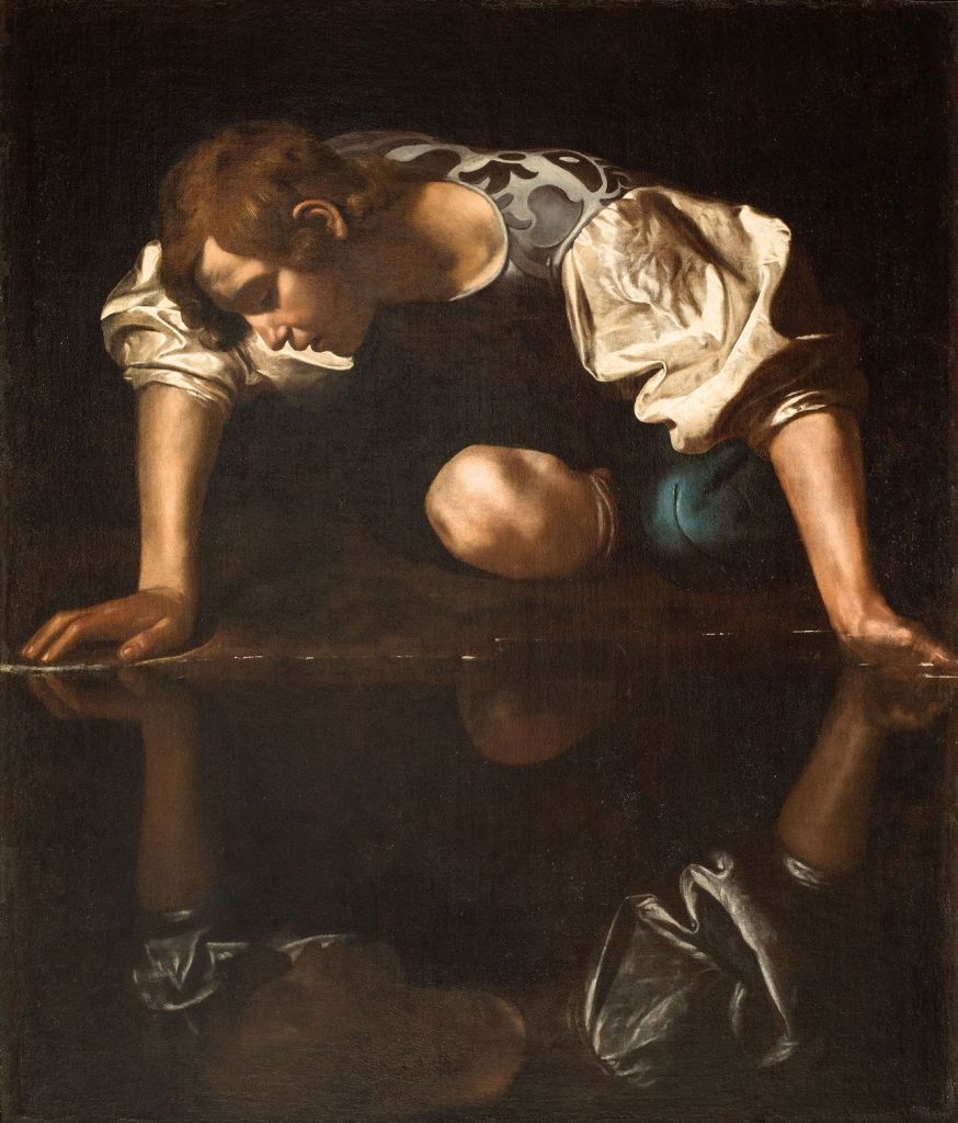 Caravaggio schilderde zijn Narcissus in Rome, in een vroege periode van zijn carrière, aan de vooravond van zijn roem. De mythe van Narcissus was erg populair in het Italië van Caravaggio. Francesco Petrarca en Dante Alighieri namen het al eerder tot onderwerp, de dichter Giambattista Marino (1569-1625), die tot de vriendenkring van Caravaggio behoorde, schreef er een beroemd geworden gedicht over. De Renaissancistische denker Leon Battista Alberti (1404-1472) zag de figuur van Narcissus als de “uitvinder van de schilderkunst”: “Wat is kunstschilderen anders dan een gebaar van omhelzen door middel van het oppervlak van de vijver?”